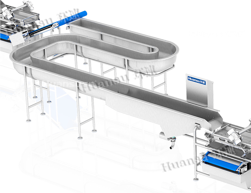 渦流清洗機主要是整合氣泡清洗和螺旋式清洗,兩大優(yōu)點進行設(shè)計。配合鮮食溜槽消毒機、鮮食殺菌清洗機共同組成鮮食自動化滅菌清洗生產(chǎn)線。