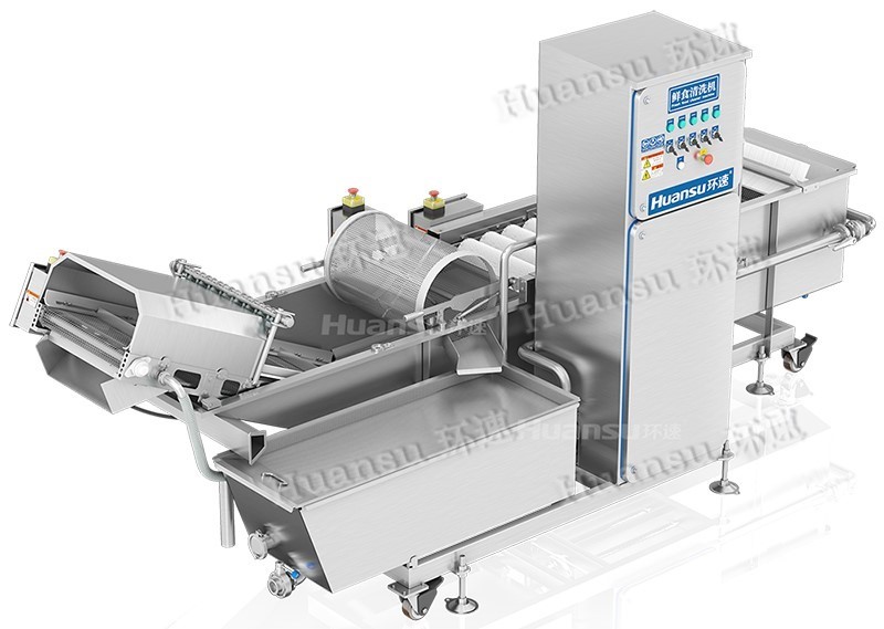 蔬菜在采摘、生產(chǎn)時(shí)不可避免會(huì)存在大量雜質(zhì),如蔬菜表面附著的泥沙、干葉、飛蟲與毛發(fā)等。為此,環(huán)速研發(fā)的蔬菜清洗機(jī)使用舞動(dòng)式曝氣清洗,將混入蔬菜中的雜質(zhì)同蔬菜進(jìn)行初步分離,再通過毛發(fā)去除裝置、漂浮物去除裝置與過濾輸送裝置等將不同特性的雜質(zhì)進(jìn)行分離從而實(shí)現(xiàn)凈菜清洗的目的。設(shè)備不僅可以清洗葉類蔬菜,也可以清洗根莖裝類、菇類蔬菜。為了滿足不同廠家的需求,環(huán)速還研發(fā)了肉類清洗機(jī)與水果清洗機(jī),將兩種食材清洗干凈。