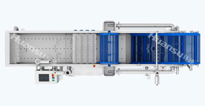 環(huán)速自動(dòng)果蔬清洗機(jī)曝氣清洗、柔和作業(yè)、洗凈率高、清洗量大,實(shí)現(xiàn)大批量食材連續(xù)式清洗。